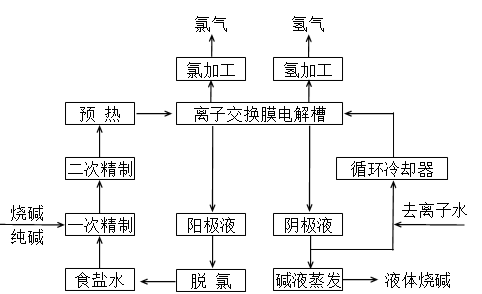 (II)氯碱工业是最基本的化学工业之一,离子膜电解法为目前普遍使用的生产方法,其生产流程如下图所示: