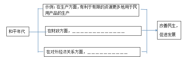 (3)和平是经济社会繁荣发展的基础。相比战争年代,和平年代在生产、财政与对外关系等方面能为经济发展提供更好条件、更多机会。运用《经济生活》知识,完成图3。