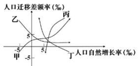 24.下图表示1998~2008年期间,甲、乙、丙、丁四个城市人口变动统计情况(人口迁移差额率为人口迁入与迁出的差额占总人口的比重)。读图,与我国东部沿海城市改革开放以来的人口变动情形最相似的是( )