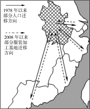 (1)分析图示服装加工基地转移和人口迁移的原因。