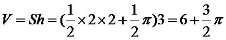 将三视图画出直方图然后在旋转为立体图形。为三棱柱和半个圆柱。体积为