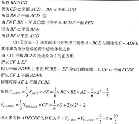 (2)求多面体ADFCBE的体积。