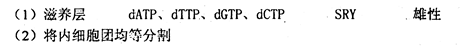 (3)医生抽取活体胚胎的1~2个细胞后,可通过观察_______________判断早期胚胎的性别,你认为医生应选用_______________性胚胎进行移植,应用现代生物技术,现在人们已能够选取最理想的胚胎进行移植,自然状态下出现这样的胚胎的概率是_________________。
