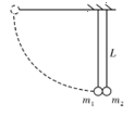 (2)两个等大的弹性球m1、m2,用两根长为L的细线分别竖直悬挂,静止时两球恰能接触。若把质量较小的球m1拉开使悬线呈水平状态,然后由静止开始释放,相碰后两球升到同样的高度,求:(1)两球质量大小有何关系?(2)碰后两球升到多高?