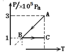 (2)一定质量的理想气体从状态A变化到状态B,再变化到状态C,其状态变化过程的P-T图象如图所示。已知该气体在状态A时的体积为1×10-3m3。求: