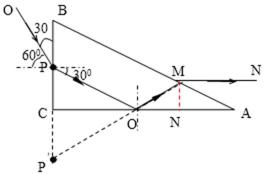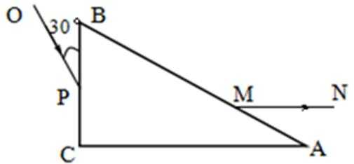 30.如图所示,三棱镜的横截面为直角三角形ABC,∠A=30°,∠B=60°。一束平行于AC边的光线自AB边的P点射入三棱镜,在AC边发生反射后从BC边的M点射出。若光线在P点的入射角和在M点的折射角相等。