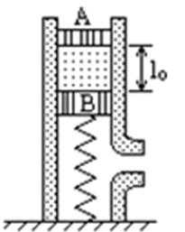 (2)如图所示,一个上下都与大气相通的直圆筒,内部横截面的面积S=0.01m2,中间量可不计、B的质量为M,并与一劲度系数k=5×103N/m的较长的弹簧相连。已知大气压强p0=1×105Pa,平衡时,两活塞间的距离l0=0.6m。现用力压A,使之缓慢向下移动一定距离后,保持平衡。此时,用于压A的力F=5×102N。