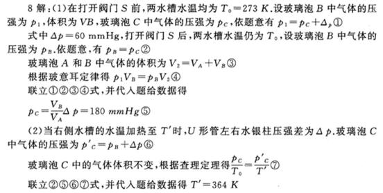 (2)一高压气体钢瓶,容积为V0,用绝热材料制成,开始时封闭的气体压强为p0,温度为T0=300K,内部气体经加热后温度升至T1=350K,求: