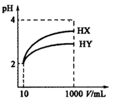 28.常温下,10 mL pH均为2的HX、HY两种一元酸溶液加水稀释过程中溶液的pH随溶液体积变化曲线如右图所示: