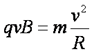 设带电微粒做匀速圆周运动的半径为R,根据牛顿第二定律,有 qvB=mv2/R