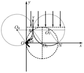(2)沿与x轴45°向下射出的带电粒子在磁场中运动的时间最长,轨迹如图,根据几何关系粒子离开磁场时速度方向沿y轴正方向,∠OO3Q=135º。