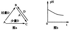 20.若A为强碱,D为气态氧化物。B的水溶液露置于空气中一段时间,其pH变化如图b所示,则其pH变化的原因是____________(用离子方程式表示)。