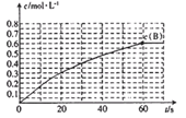 (5)实验4中,假定在50 min将容器的容积缩小为原来的一半,请在下图中用曲线表示体系中各物质的浓度随时间变化的趋势(曲线上必须标出A、B、D)。