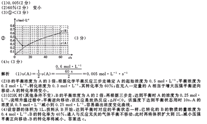 (3)其他条件不变,反应在323K进行,B的平衡浓度为A的2倍,且达到平衡所需时间为298K时的