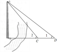 在C出测得对烟囱AB的仰角∠2后退m米,在D处测得对烟囱AB的仰角∠1.