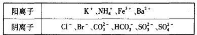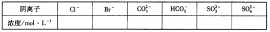 ①将阴离子的物质的量浓度填入下表中(一定不存在的填“0”,不能确定的填“?”):