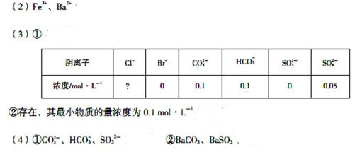 (1) NH4+、Al3+; CO32- ; SO42- ; Ba2+ ; Br-