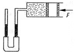 (2)如图所示,水平放置导热良好的圆筒形气缸与一装有水银的U形管右端相连,U形管左端开口,气缸中封闭一定质量的理想气体。开始时U形管两臂中水银面齐平,活塞处于静止状态,此时气体体积为500mL。若用力F缓慢向左推动活塞,使活塞向左移动一段距离后,U形管左臂水银比右臂高24cm,已知外界大气压强为760毫米汞柱,不计活塞与气缸内壁间的摩擦,试回答下列问题: