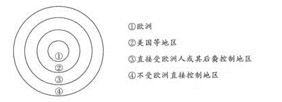 (1)关系:①、②类国家(地区)处于主导、支配地位,③、④类国家(地区)处于从属、附庸地