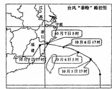 (十一)台风每年都会影响我国东南沿海地区,台风登陆时,伴有特大暴雨,给当地造成洪涝灾害。右图为2013年台风“菲特”登陆我国浙江福建交界处时的路径图。