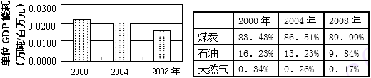 27.2000年到2008年长江三角洲某地工业企业能源消耗总量翻了近两番,根据该地工业企业能源消费结构和单位GDP能耗变化图表分析,2000年到2008年该地工业企业能源消耗基本特征是( )