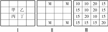 24.下图网格资料Ⅰ中的甲、乙、丙、丁是四块土地的代码,网格资料Ⅱ中的M为新建地铁站位置,网格数据Ⅲ为目前地价,如果地价随着离地铁站的距离而变化,计算公式为: