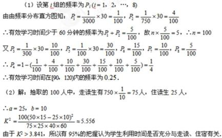 (2)如果把“学生晚上有效时间达到两小时”作为是