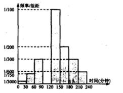 20.某校高一年级共有学生1000名,其中走读生750名,住宿生250名,现从该年级采用分层抽样的方法从该年级抽取n名学生进行问卷调查。根据问卷取得了这n名同学每天晚上有效学习时间(单位:分钟)的数据,按照以下区间分为八组:[0,30),[30,60),[60,90),[90,120),[120,l50),[150,180),[180,210),[210,240),得到频率分布直方图如下图。已知抽取的学生中每天晚上有效学习时间少于60分钟的人数为5人。