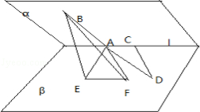 如图,过A点做AE⊥l,使BE⊥β,垂足为E,过点A做AF∥CD,过点E做EF⊥AE,连接BF,