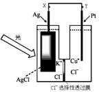 一种光化学电池的结构如右图,当光照在表面涂有氯化银的银片上时,AgCl(s)