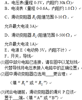 由图甲可知,电压表采用分压式接法,滑动变阻器应选择最大阻值较小的那个,闭合