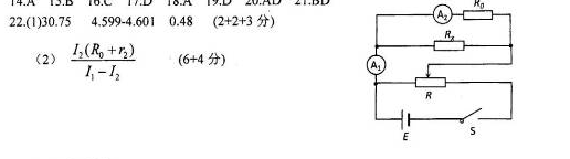 22.I.(1)用螺旋测微器测小球直径时,示数如图甲所示,这时读出的数值是( )mm。