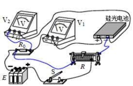 ②用遮光罩罩住硅光电池,闭合开关S,调节变阻器R,读出电压表V1、V2的示教U1、U2。