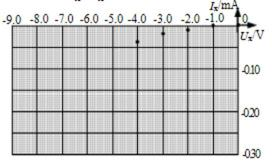 (ⅱ)该小组测出大量数据,筛选出下表所示的9组U1、U2数据,算出相应的硅光电池两端反向电压UX 和通过反向电流IX(表中“-”表示反向),并在坐标纸上建立IX-UX坐标系,标出了与表中前5组UX、IX数据对应的5个坐标点。请你标出余下的4个坐标点,并绘出IX-UX图线。