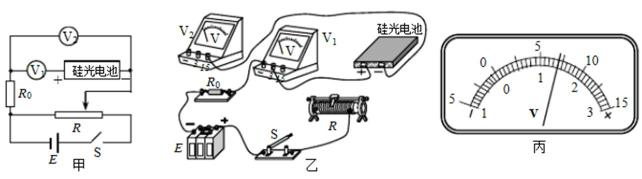 (ⅰ)某次测量时,电压表V1示数如图丙,则U1= V,可算出通过硅光电他的反向电流大小为