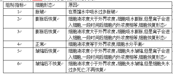 (2)不同浓度NaCl溶液下兔红细胞的形态变化表