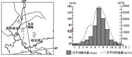 下列关于扎龙湿地形成条件的叙述,正确的是( )
