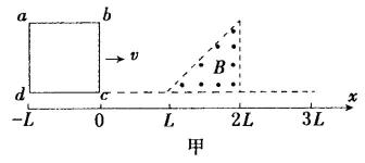 18.如图甲所示,有一个等腰直角三角形的匀强磁场区域,其直角边长为L,磁场方向垂直纸面向外,磁感应强度大小为B。一边长为L总电阻为R的正方形导线框abcd,从图示位置开始沿x轴正方向以速度v匀速穿过磁场区域。取沿a→b→c→d→a的感应电流为正,则表示线框中电流i随bC边的位置坐标x变化的图象正确的是( )