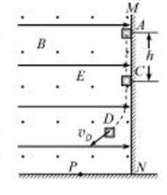(1)由题意知,根据左手定则可判断,滑块在下滑的过程中受水平向左的洛伦兹力,当洛伦兹力等于电场力qE时滑块离开MN开始做曲线运动,即Bqv=qE