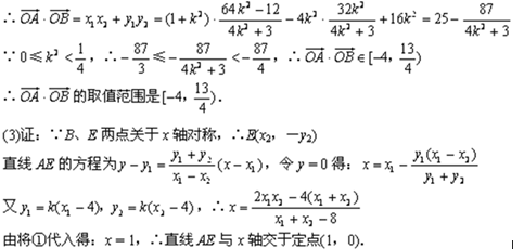 (3)若B点在于x轴的对称点是E,证明:直线AE与x轴相交于定点。