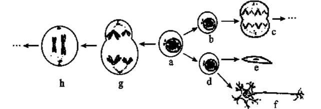 (3)e细胞和f细胞的功能不同是____________的结果,如果e变成了能够产生抗体的细胞,则细胞的名称为_________;如果变成了癌细胞,主要原因是__________基因发生了突变。