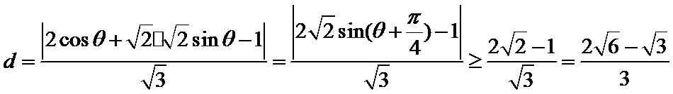 32.设Q为曲线C1上一动点,求Q点到直线l距离的最小值。