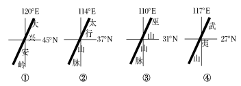 4. 读“我国四条重要的山脉位置示意图”,下列关于图中山脉及其两侧地理事物的说法,正确的是( )