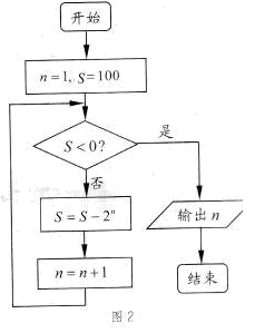 执行如图2所示的程序框图,则输出的n值为
