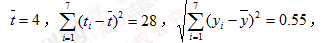 因为 y与t的相关系数近似为0.99,说明y与t的线性相关程度相当高,从而可以用线性回归模型拟合y与t的关系. ............6分