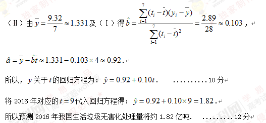 (Ⅱ)建立y关于t的回归方程(系数精确到0.01),预测2016年我国生活垃圾无害化处理量.
