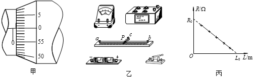 (3)小明用记录的多组电阻箱的电阻值R和对应的接入电路中电阻丝长度L的数据,绘出了如图丙所示的R-L关系图线,图线在R轴的截距R0最接近的数值为( )