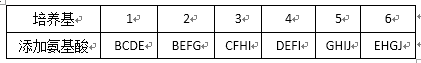 突变型面包霉常需要在基本培养基上添加适当的氨基酸才能生长。现用两个氨基酸依赖型红色面包霉突变株a和b,分别接种到下面的6种培养基上,2种突变株在1、3、5号培养基上都不能生长,a、b可以分别在2、4和2、6号培养基上生长。培养基成分如下表。关于突变株a和b分别对A~J中氨基酸需求的说法正确的是()