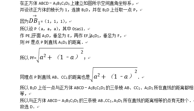 与正方体ABCD﹣A1B1C1D1的三条棱AB、CC1、A1D1所在直线的距离相等的点( )