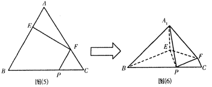 在正三角形ABC中,E、F、P分别是AB、AC、BC边上的点,满足AE :EB=CF :FA=CP :PB=1 :2,如图(5).将△AEF沿EF折起到△A1EF的位置,使二面角A1一EF-B成直二面角,连结A1B、A1P,如图(6).